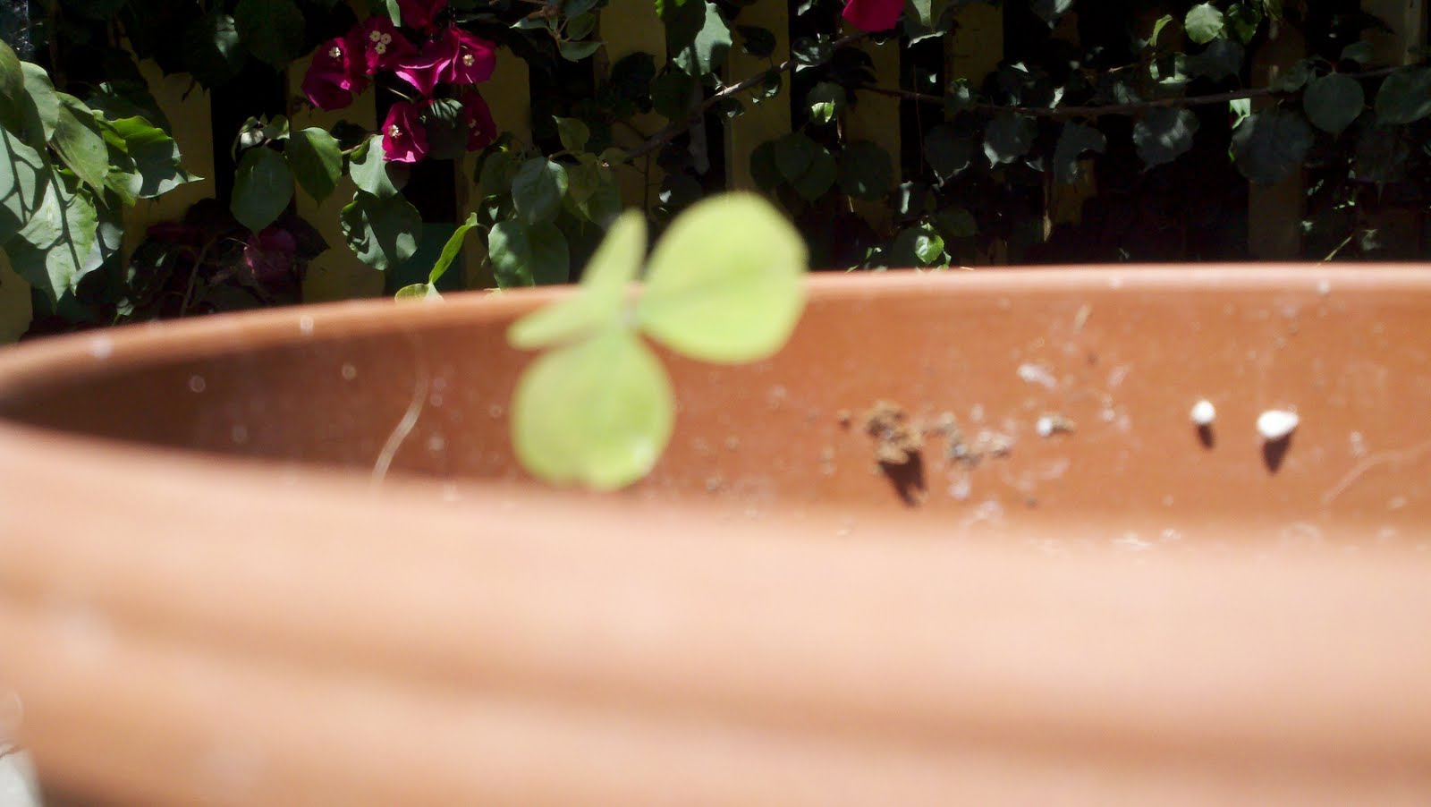 I took this photo earlier today. I was surprised to see a little shamrock in my flower pot upstairs on the deck near our upper room of my house. I thought the plant took its death before its time rapidly after St. Patrick's Day.